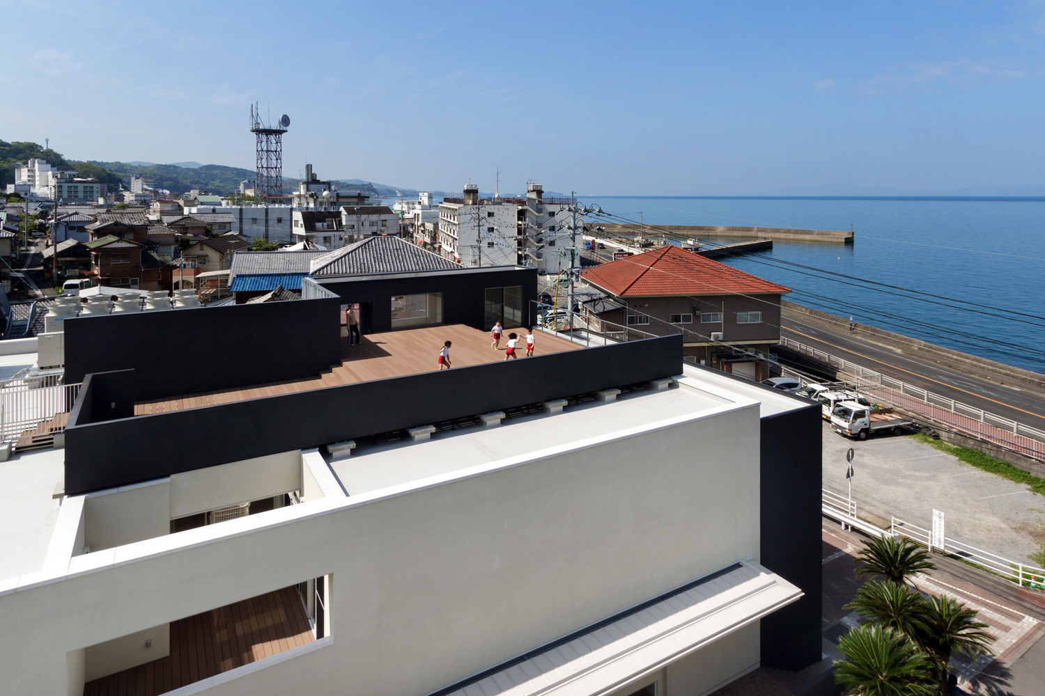 在日本長崎縣有一所幼兒園,就像海子的詩(面朝大海春暖花開)一樣,是一座面朝大海的建筑,這個幼兒園建于里亞式海岸旁。一望無際的海面向南方蔓延,在幼兒園樓頂上看向大海的南方有座山,這是一座能使人們感受到大自然神奇的創(chuàng)造力秀麗山峰。幼兒園的建筑高12m,室內(nèi)寬敞明亮設(shè)計師充分利用臺階的優(yōu)勢,解決兒童因身高限制而無法觸到和看到的高度問題。該建筑布局和流程圖是根據(jù)交通和兒童保育計劃特別設(shè)計的。