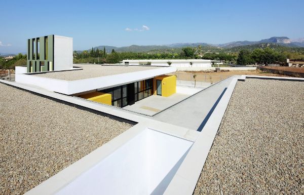 這座建筑極具藝術特色,它的室外房間的玻璃外觀是由黃綠藍三色組成的,校內還配有同樣顏色的活動場地。