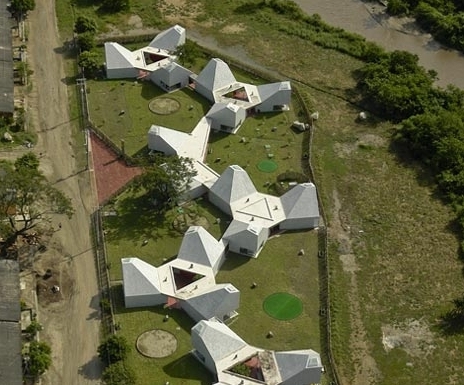 Timayui幼兒園由六個像花一樣的單體構成,它們散落在場地中,同時將室外空間融合到幼兒園的平面中。每座建筑的內部還設計了天窗,自然光線從墻面傾瀉而下,為孩子們提供了明亮的室內環境。 該幼兒園不僅提供給孩子健康、積極的環境,而且致力于改善周圍貧窮的社區環境。